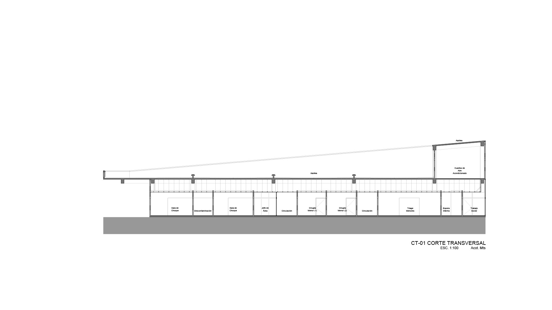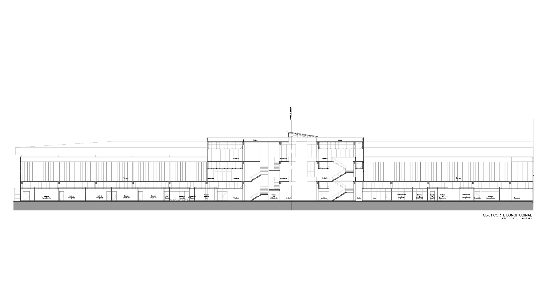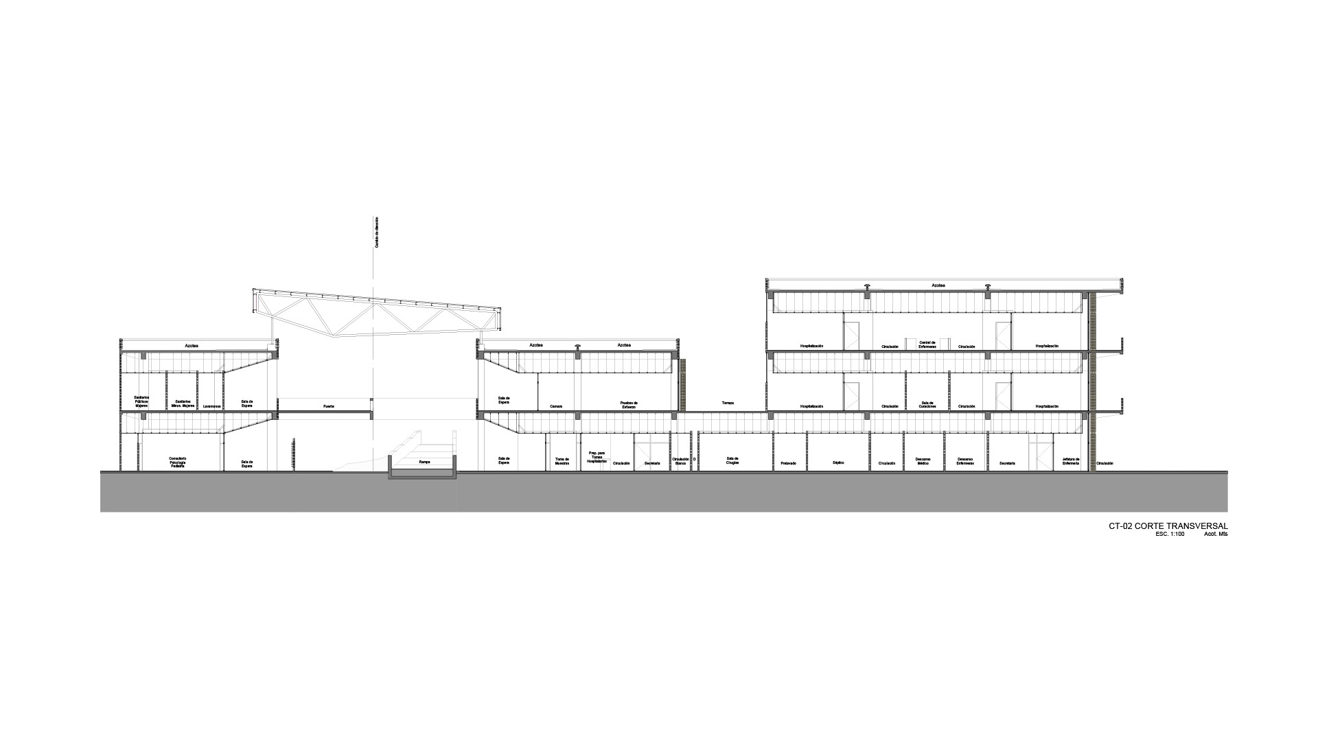 La propuesta interpreta demandas vigentes de sustentabilidad ambiental, inclusión y accesibilidad; mediante la apuesta por un espacio, permeable, abierto, cubierto y contenido se pretende prescindir de aire acondicionado en los espacios eminentemente públicos—salas de espera y circulaciones del Hospital— mediante un eje espacial a doble altura donde se disponen rampas que hacen accesible el espacio de manera universal a todas personas.